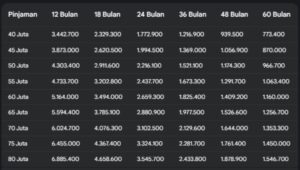 Berikut contoh simulasi angsuran: