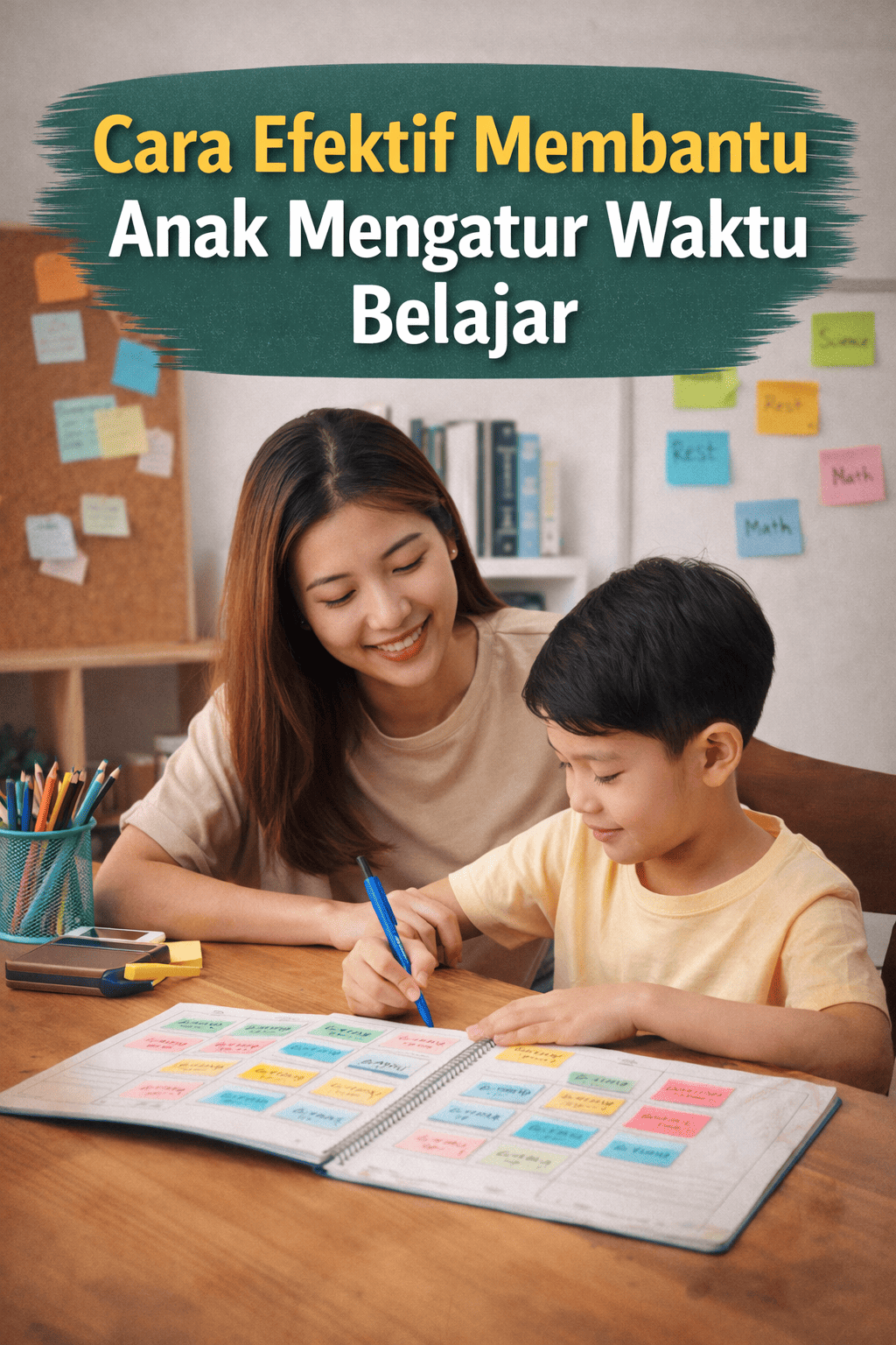 Langkah awal yang dapat dilakukan adalah membantu anak melihat gambaran aktivitas hariannya secara menyeluruh. Visualisasi ini bisa dibuat melalui kalender fisik, planner yang ditempel di dinding, atau aplikasi jadwal sederhana.