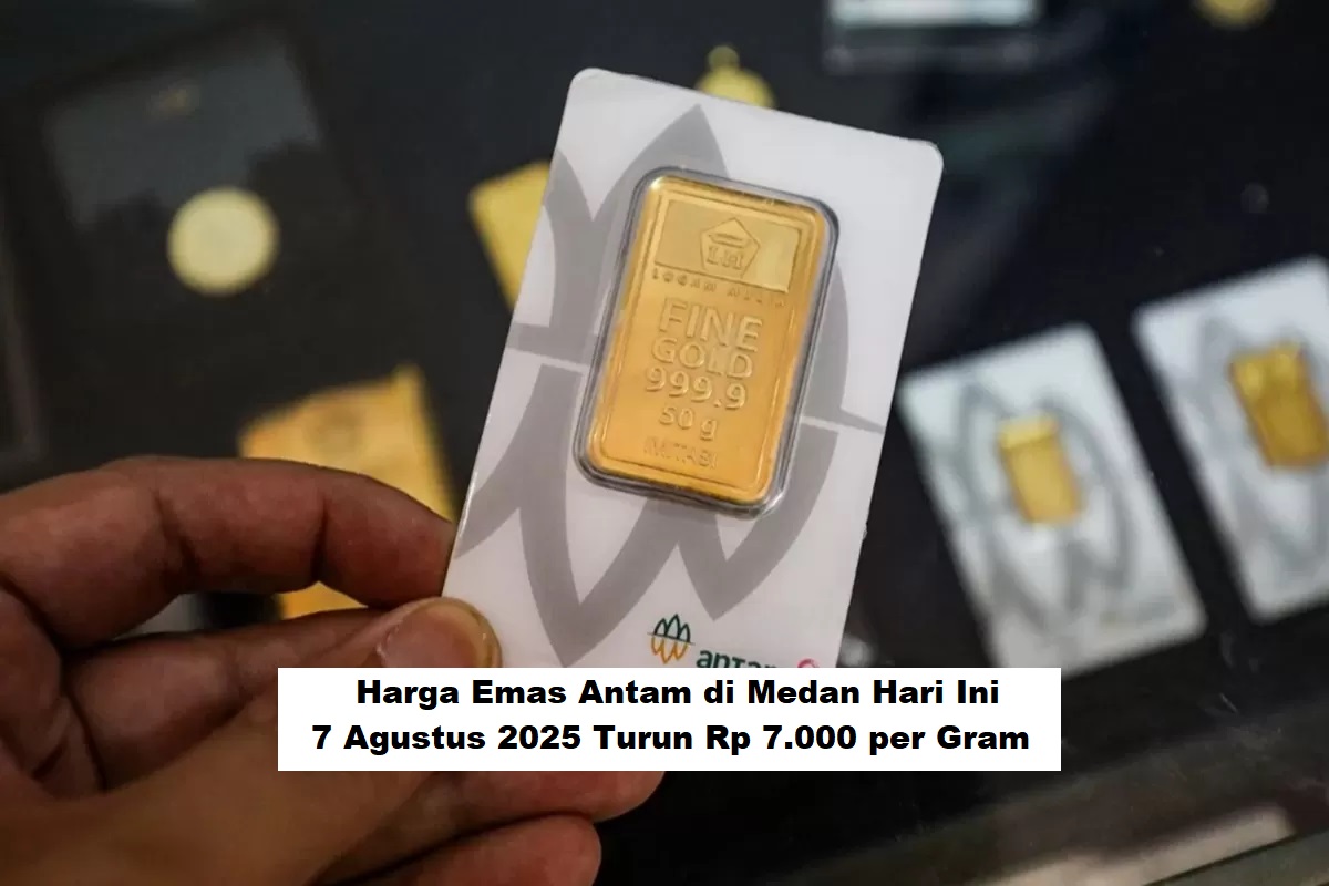 Harga emas Antam di Medan hari ini, Kamis 7 Agustus 2025, kembali mengalami penurunan.