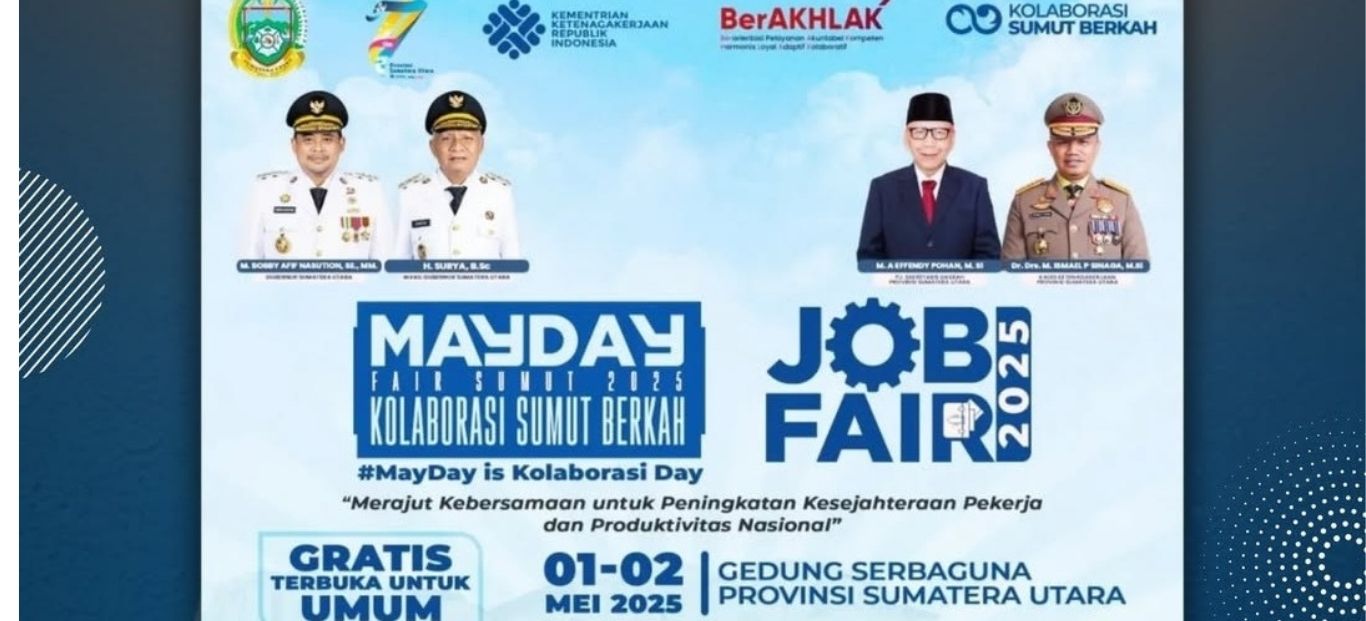 Sedang mencari pekerjaan? Atau ingin meningkatkan peluang karier di tahun ini? Jangan lewatkan Job Fair terbesar di Sumatera Utara tahun 2025! Dalam rangka memperingati May Day, Pemerintah Provinsi Sumatera Utara bersama berbagai mitra menghadirkan Mayday Fair Sumut 2025—ajang kolaborasi strategis untuk meningkatkan kesejahteraan dan produktivitas tenaga kerja nasional.