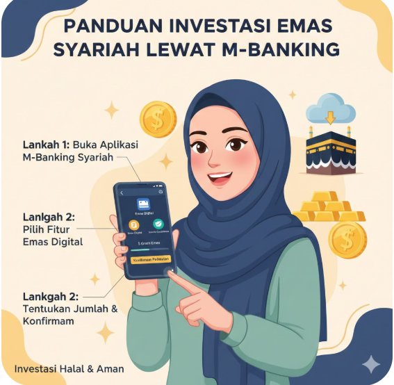 Seiring perkembangan teknologi perbankan, kini investasi emas dapat dilakukan secara praktis melalui layanan mobile banking (m-banking), termasuk yang berbasis prinsip syariah.